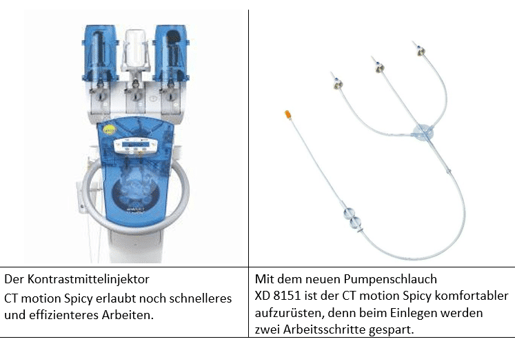 Mit der Modell-Variante „Spicy“ stattet der Medizintechnik-Hersteller ulrich Medical seinen CTmotion mit neuen Soft- und Hardware-Funktionen aus, die genau diese Möglichkeiten bieten. Zusätzlich ermöglicht der Kontrastmittelinjektor nun noch schnelleres und effizienteres Arbeiten.