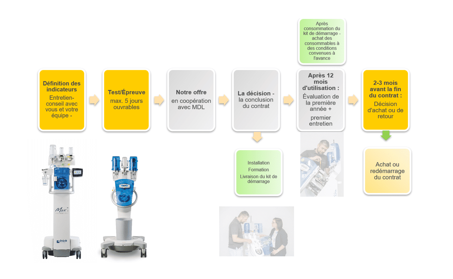 Ensuite, nous déciderons ensemble, avec vous et MDL Medical Devices Lease, de la manière dont nous pouvons rétablir la satisfaction avec notre solution.